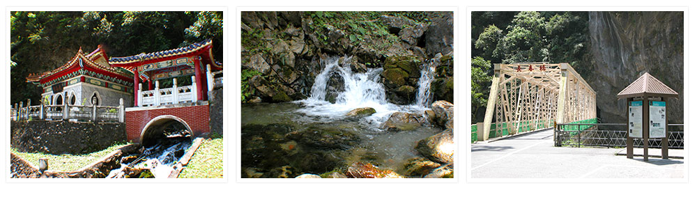 | 長春祠後有一道三八○ 階的石梯蜿蜒向上,俗稱「天梯」,走到盡頭便可抵達觀音洞,內有觀音石佛及橫貫 公路施工全圖。繼續前行可過吊橋抵達禪光寺,沿途植披、湧泉等景觀,視野遼闊,可俯瞰蜿蜒於山谷的立霧溪,及太平洋的景觀。 |